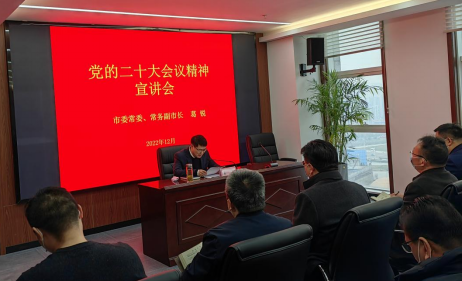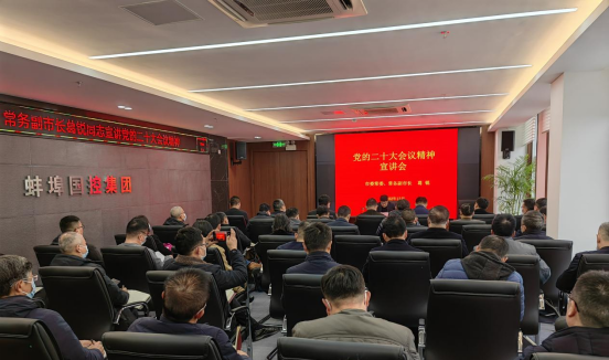12月8日下午,蚌埠市委常委、常務(wù)副市長葛銳到集團(tuán)宣講黨的二十大精神。集團(tuán)黨委書記、董事長陳建功主持會(huì)議,集團(tuán)總部領(lǐng)導(dǎo)班子和中層管理人員,交投集團(tuán)、水投公司、城開公司、建院集團(tuán)、排水公司、糧食系統(tǒng)及汽運(yùn)集團(tuán)領(lǐng)導(dǎo)班子成員參加會(huì)議。